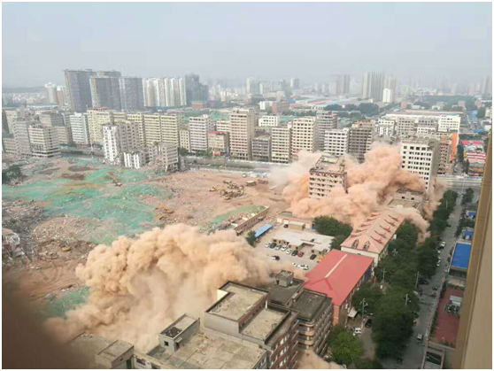 首頁 > 新聞中心 > 公司新聞隆隆巨響,一座座樓房瞬間坍塌,掀起一陣濃塵,久久不息... ...!承載著眾多鄭漂一族青春的陳砦村,那個被很多鄭州人稱為小香港的陳砦村,再一次成為被人們的目光聚焦,今天(2017年08月04日)下午16點實施了房屋拆除的第二次定點爆破,并由區(qū)委書記親自掛帥現(xiàn)場指揮。