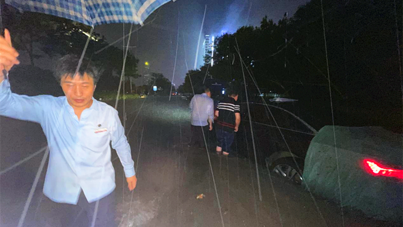7月20日當(dāng)晚,面對暴雨汛情突發(fā),美盛物業(yè)迅速集結(jié)各項目工作人員成立應(yīng)急小組,全員24小時堅守在一線救災(zāi)抗災(zāi)。當(dāng)日22點,物業(yè)服務(wù)中心接到業(yè)戶求助電話,車輛涉水拋錨美盛中心外1公里處,情況緊急。美盛物業(yè)項目負(fù)責(zé)人迅速集結(jié)秩序經(jīng)理、消防主管、中心工程經(jīng)理等趕往現(xiàn)場,以最短時間到達(dá)業(yè)主身邊,幫業(yè)戶推車至安全地區(qū)。
